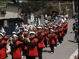 を先頭に、甲冑行列、子供みこしとつづく行列が町を練り歩いた。