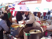第7回より会場を「わくわくランド」内に移動し、よりダイナミックかつ盛大に開催されています。 会場には開会前より長蛇の列が出来、出陣の合図と共にお目当ての鍋に一斉に駆け出します。