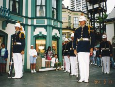 入り口にあるヨーロッパ調のバーガーキングが目印で、毎日夕方に行われる衛兵交代式は必見。