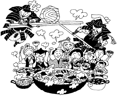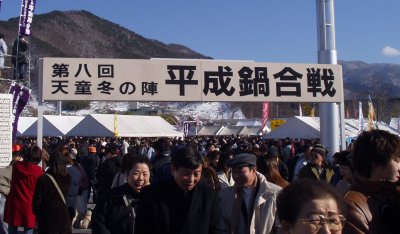 第7回より会場を「わくわくランド」内に移動し、よりダイナミックかつ盛大に開催されています。 会場には開会前より長蛇の列が出来、出陣の合図と共にお目当ての鍋に一斉に駆け出します。