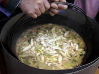 大勢にふるまわれる事を前提に、大きい鍋で鴨のツミレ汁を先に作っておき、10人分くらいを