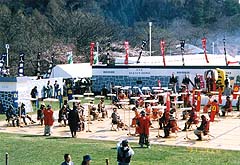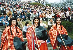 「天童桜まつり」は、天童駅ビル・パルテ三階の 市民プラザで行われる開幕式で幕を開ける。当日 午後からは恒例の「ミス将棋の女王」コンテスト が行われ、祭りに華を添える。 人間将棋の行われる初日には、「ミス将棋の女王」 の発表とお披露目式、さらに前年度の「ミス将棋 の女王」からの引継式等が行われる。 |