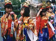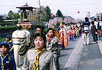 4月29日には、お釈迦さまの誕生日を祝う稚児行列が行われる。